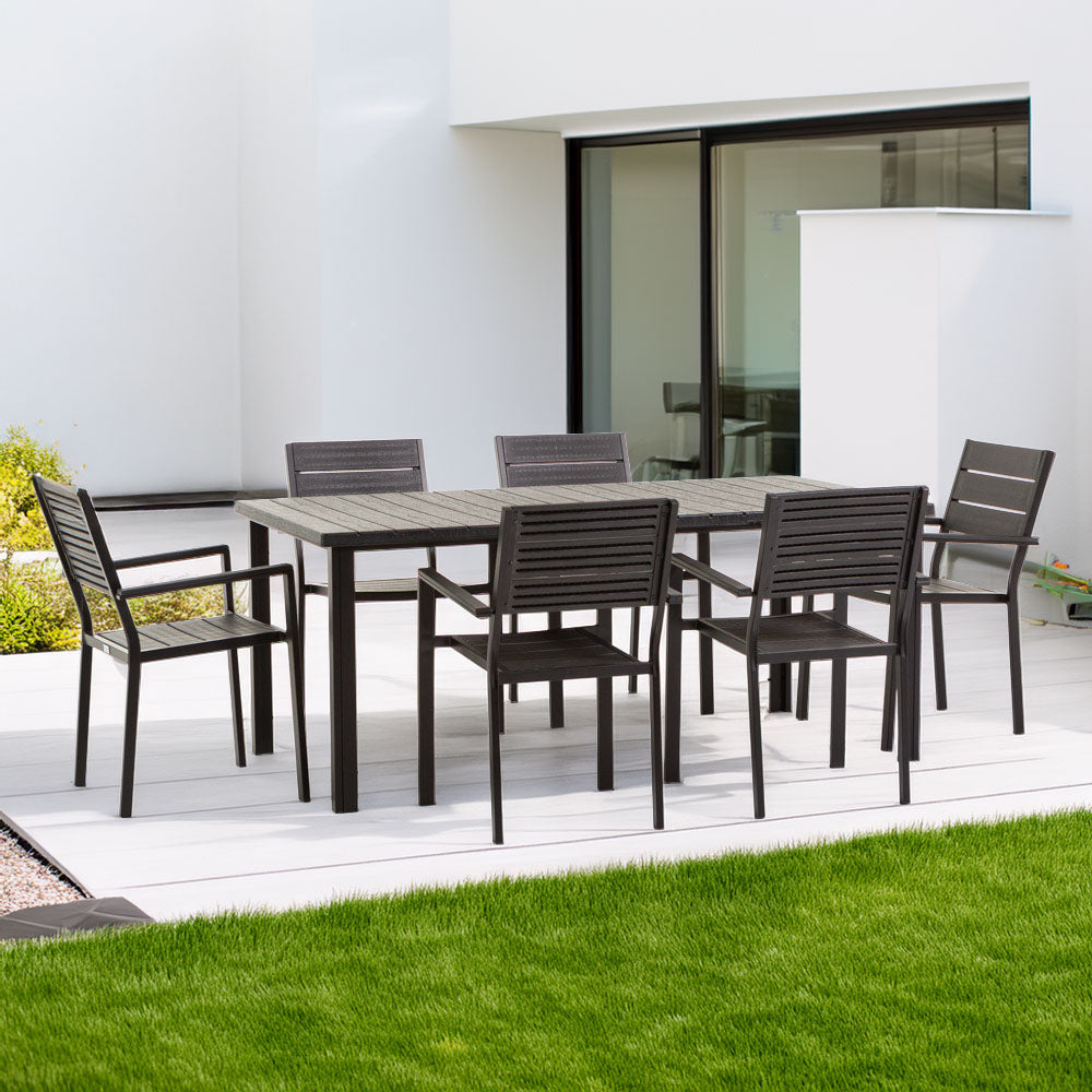 Ensemble repas de jardin composé de la table THOMAS et de 6 fauteuils ADELE.