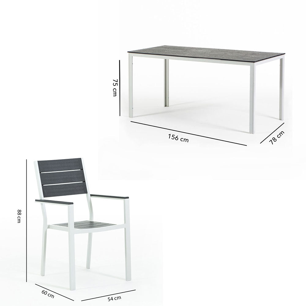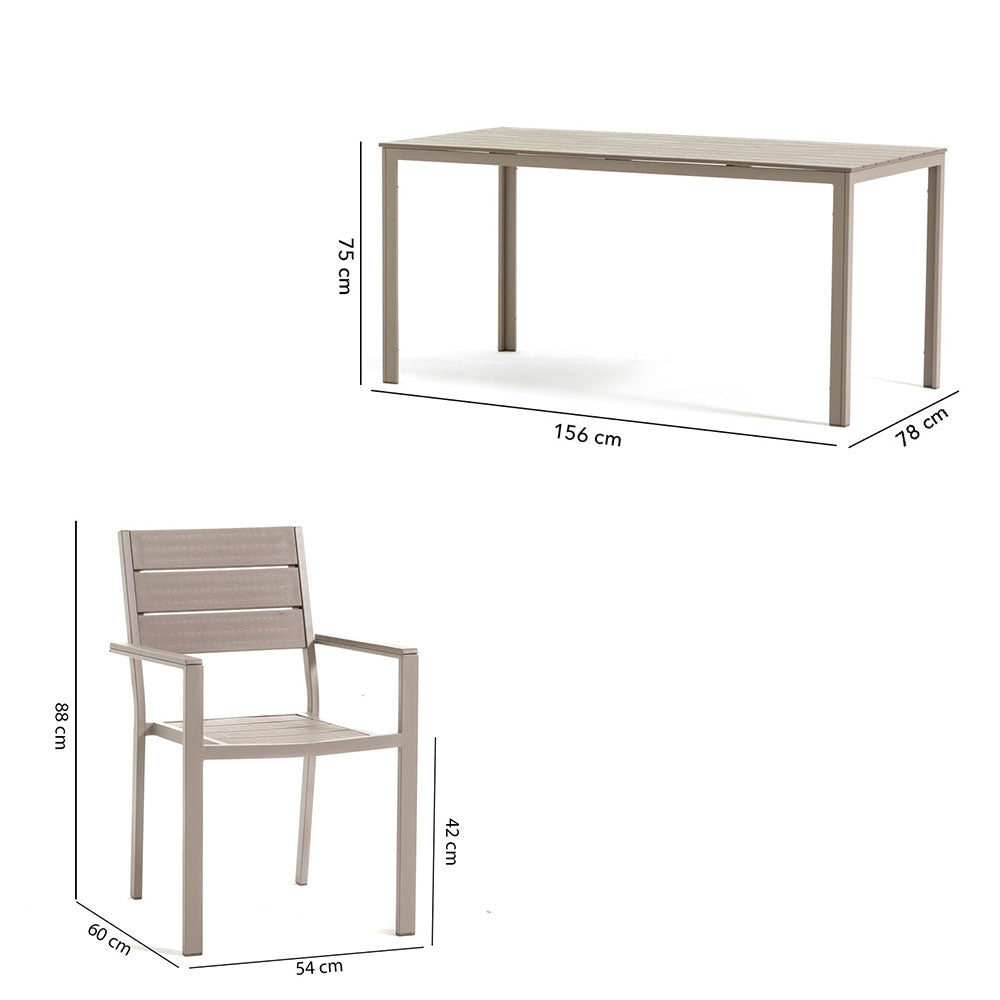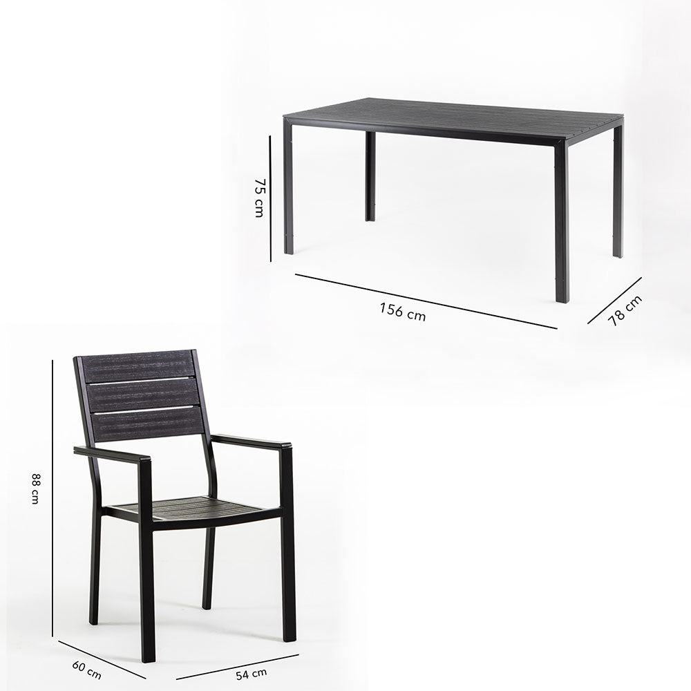 La table rectangulaire de 156 x 78 cm est dotée d’une structure en fer et d’un plateau en polyéthylène. Solide et facile à monter en quelques étapes, elle se distingue par un style moderne et raffiné avec un plateau effet bois.