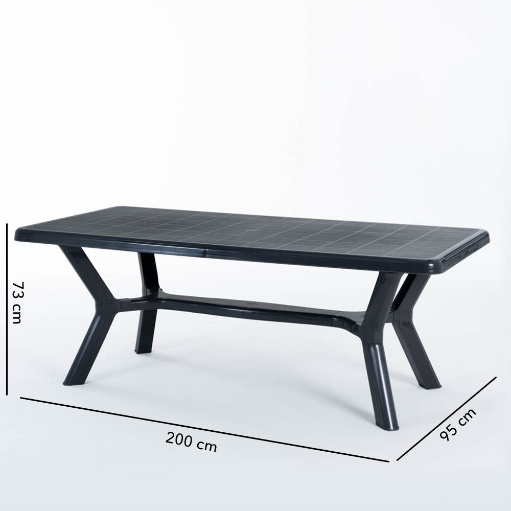 La table SAMUEL en résine, avec ses pieds croisés au design original, est idéale pour aménager élégamment votre espace extérieur.