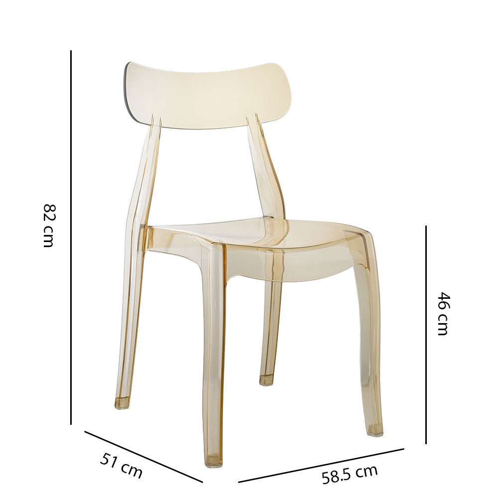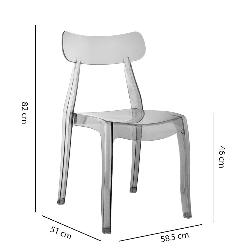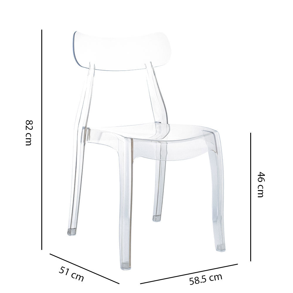 Realizzate in policarbonato trasparente, offrono resistenza e leggerezza visiva, perfette per ambienti contemporanei e luminosi. Lo schienale ergonomico leggermente curvato garantisce un comfort ottimale, mentre la struttura monoblocco dona solidità e praticità d’uso.