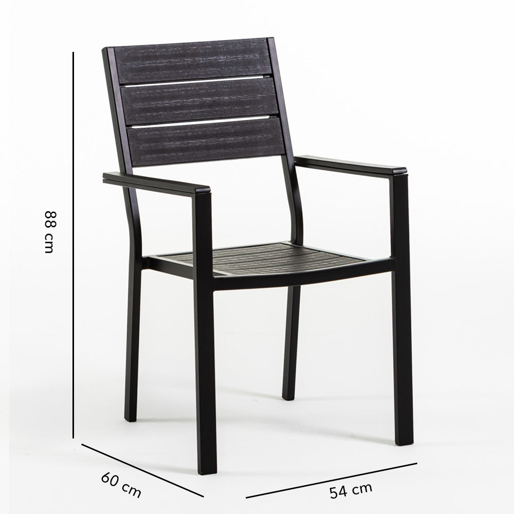 Dimensions: table: 180Lx90Px75Hcm / fauteuil: 54Lx60Px88H cm