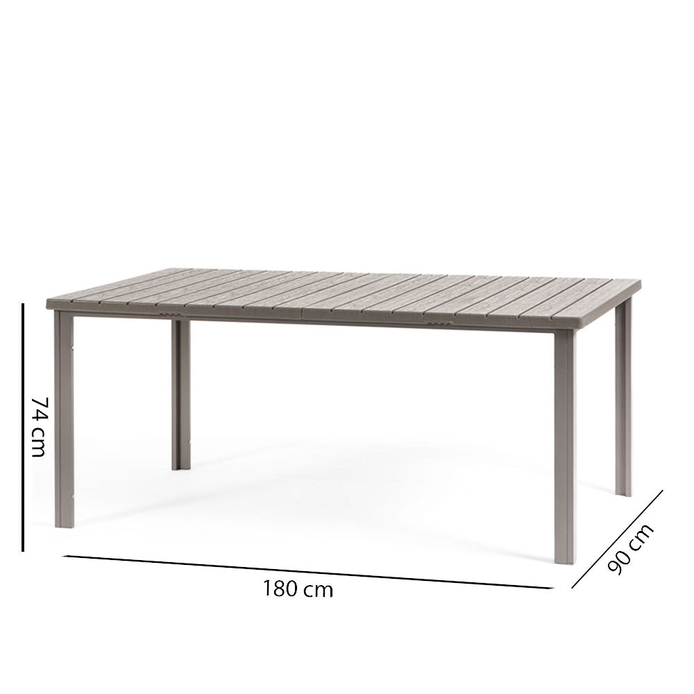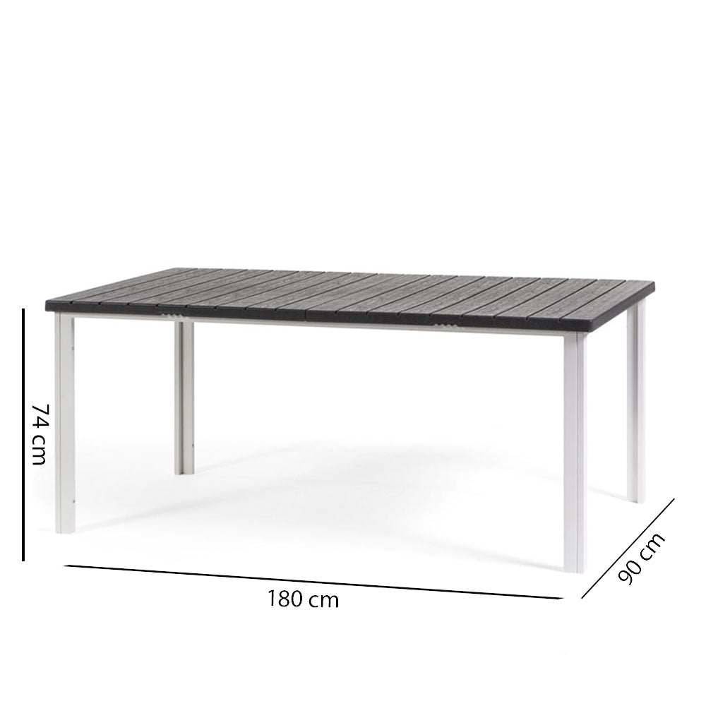 La table rectangulaire de 156 x 78 cm est dotée d’une structure en fer et d’un plateau en polyéthylène. Solide et facile à monter en quelques étapes, elle se distingue par un style moderne et raffiné avec un plateau effet bois.